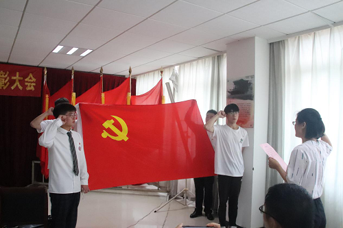 大会在庄严的国歌声中拉开帷幕。首先,张红老师带领全体新党员面向党旗,举右手握拳,庄严宣誓。18商务系移动商务的章驰宇同学作为新党员代表发言。他倡议学生党员“坚定理想信念,发挥党员先锋模范作用,在为人民服务中茁壮成长,在艰苦奋斗中砥砺前行,在实践中增长本领,做到不惧风雨、勇担重任,让青春在党和人民最需要的地方绽放绚丽之花。”