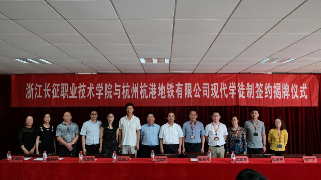 随后,王其军书记和杨春芳书记代表双方签订了“校企合作人才培养协议”,并与我校学生签订定向培养三方协议书;而后共同为“现代学徒制杭港地铁班”、“校企协同培养应用性人才基地”揭牌,开启我校与杭州杭港地铁有限公司合作的新篇章,为经济社会发展贡献我们的力量。