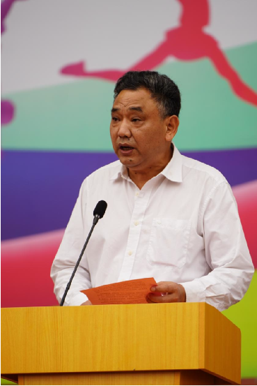 校党委副书记吴有恩代表学校,对运动会的顺利召开表示热烈的祝贺,向为本次运动会付出辛勤劳动的师生员工表示衷心的感谢,向参加运动会的运动员和裁判员致以最诚挚的敬意。他表示,学校高度重视体育活动,一直以来,把体育工作摆在突出位置,努力构建新时代德智体美劳全面培养的教育体系。他回顾了近年来学校在竞技体育方面取得成绩,希望大家继续弘扬“更快、更高、更强、更团结”的奥林匹克精神,传承“为国争光、无私奉献、科学求实、遵纪守法、团结协作、顽强拼搏”的中华体育精神,在赛场上顽强拼搏、勇攀高峰。并号召同学们在大学期间爱上一种体育运动,使其成为终身兴趣,把自己汗水洒在运动场上,把自己矫健身影留在竞争比赛当中,成就勇往直前、顽强拼搏、精诚团结、锐意进取的体育精神,并使其成为促使我们不断成长、推动学校事业持续发展的精神动力。