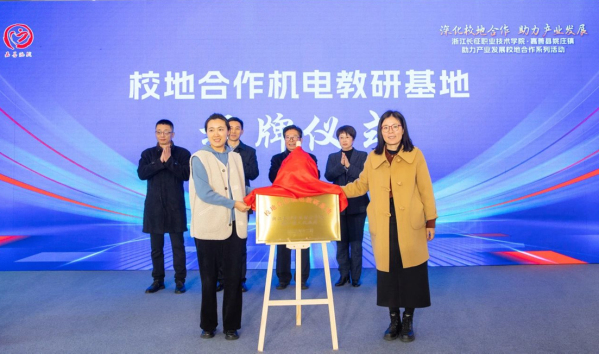 当天下午,在丁栅水乡SOHO统战基地举行了校地合作揭牌仪式。民革浙江省委会社会服务部部长吴孔龙,学校副校长杜宝山,民革嘉兴市委会副主委、嘉兴市财政局二级调研员姜东,民革嘉善县基层委员会主委、副县长董铭勤,嘉善县委统战部常务副部长徐斌,姚庄镇人大主席黄玮莉、党委委员鲁晓松,以及民革嘉兴市委员会、民革嘉善县基层委员会党员代表,学校教师代表,姚庄镇企业代表等参加了此次活动。