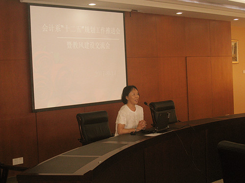 9月14日下午,会计系“十二五”规划工作推进会在学院三楼一号会议室召开,会议由会计系副主任宋波老师主持,会计系全体教师、财会学院院长高晓红教授参加了此次会议。