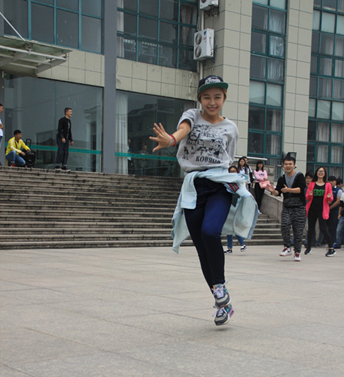 此次活动呈现的形式较为新颖,以热情动感的街舞吸引人群,做到“快闪”效果。现场歌声一起,同学们跳着欢快的舞蹈从四面八方向舞台聚拢,吸引了很多同学驻足观赏。歌声一停舞蹈就结束了,舞者们齐声喊出“爱国”、“自由”、“平等”、“法治”等振奋人心的字样。
